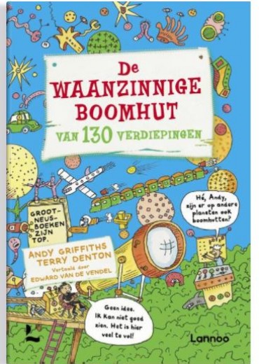 Andy en Terry hebben weer dertien verdiepingen toegevoegd aan hun boomhut en die is nu nog waanzinniger dan hij al was. Er is een zeepbellenblazer, een tijdverspilverdieping, een wc-papierfabriek (omdat je nooit genoeg wc-papier kunt hebben), een buitenaards observatiestation en de beste boekwinkel-in-een-boomhut-in-een-boom-in-een-bos-in-een-boek ter wereld! Andy en Terry hebben last van een irritante vlieg en worden naar de ruimte ontvoerd door een gigantische, vliegende oogbal. Daar moeten ze een planeet redden van een monsterlijke pad! Dus waar wacht je op? Kom naar boven! Boordevol knotsgekke illustraties van de eerste tot de honderddertigste verdieping. >