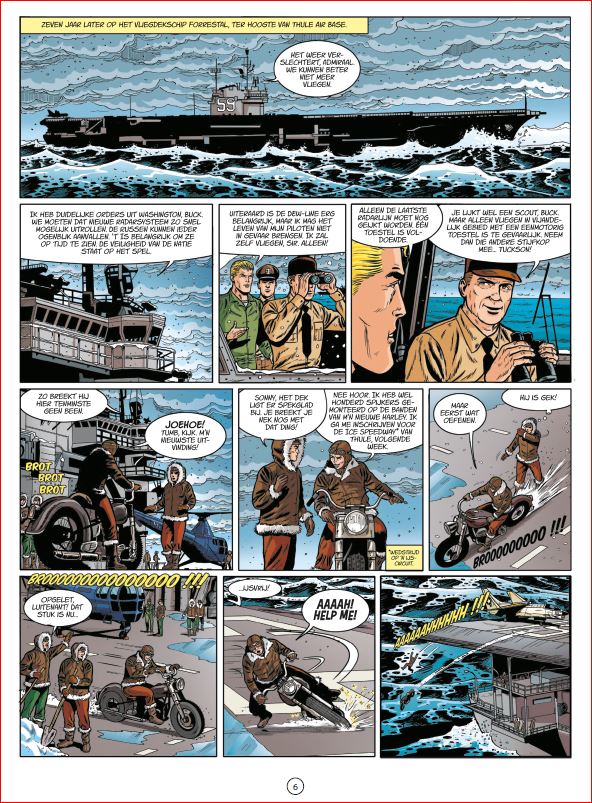 André Le Bras ( Frankrijk, °1967) neemt de tekenpen over van Jean-Michel Arroyo. Le Bras is geen onbekende binnen het luchtvaartgenre en tekende al eerder deel 2 van het tweeluik Blackbirds buiten de hoofdreeks. Van een grote stijlbreuk is absoluut geen sprake. Toch hanteert Le Bras nog net iets meer de klassieke Klare Lijn en benadert hij meer de verhalen uit de begindagen van de reeks. Niet onbelangrijk in een luchtvaarrstrip zijn de actiescènes en de vliegtuigen. Ook dat zit helemaal goed! (ssz) stripscenarist Zumbiehl Frédéric ( Frankrijk,°1965) schreef reeks verhalen in volgende stripreeksen Buck Danny Buck Danny Classics Tanguy en Laverdure Het vervolg op de spin-off van de populairste Frans-Belgische vliegtuigreeks! 1951, midden in de Koude Oorlog. Een transportvliegtuig, met aan boord een Amerikaanse generaal en veertig nucleaire technici, landt na een incident op zee voor de kust van Ierland. Als de reddingswerkers op de plek van de ramp aankomen, vinden ze echter geen reddingsboot, zelfs geen enkel lichaam... De missie van Buck Danny en zijn vrienden is om ze zo snel mogelijk te vinden. In deze geopolitieke context is het immers uitgesloten om de opslagplaatsen van atoomkennis in verkeerde handen te laten vallen! Om hem bij zijn hachelijke missie te helpen, kan Buck rekenen op een experimenteel vliegtuig dat in staat is om op zeer grote hoogte te vliegen met drie keer de snelheid van het geluid: de Rapier... Een nieuwe Buck Danny Classic geïnspireerd op een waargebeurd historisch feit, om uw verbeelding nog meer te prikkelen!