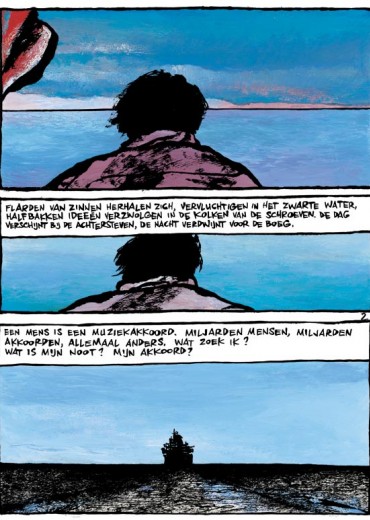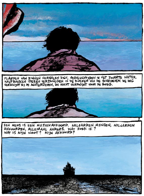 Een haven, een stad. Een man op straat. Alleen. Verderop, bij het vluchtpunt van de spoorlijn: bomen en een gebergte dat steeds dichterbij komt. Het ultieme doel. De man met zijn herinneringen. Flarden uit het verleden. Flarden uit het leven. Een vrouw, een soldaat, een ouder stel ... ontmoetingen. De man met zijn vragen. Hoe moet je je noot vinden in deze kakofonie?