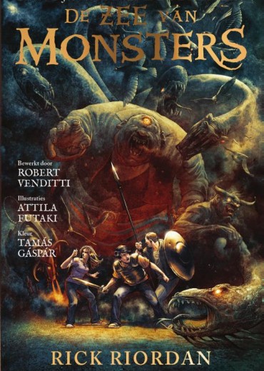 Superspannende tweede graphic novel over Percy Jackson Als je naar me kijkt zou je niet zeggen dat mijn vader Poseidon is, de god van de zee. Het klinkt misschien leuk om een halfbloed te zijn, maar het is niet makkelijk. Zelfs een simpel potje trefbal werd een spel op leven en dood tegen een lelijke bende kannibaalreuzen – en dat was nog maar het begin. Nu wordt Kamp Halfbloed aangevallen en als ik het Gulden Vlies niet vind, zal het hele kamp worden overlopen door monsters. Heel grote… Dit is het tweede deel van de Percy Jackson-serie dat bewerkt is tot graphic novel. De wereld van de Griekse goden en halfgoden komt opnieuw tot leven met de illustraties van Attila Futaki. Lees ook de eerste graphic novel van Rick Riordan: De bliksemdief