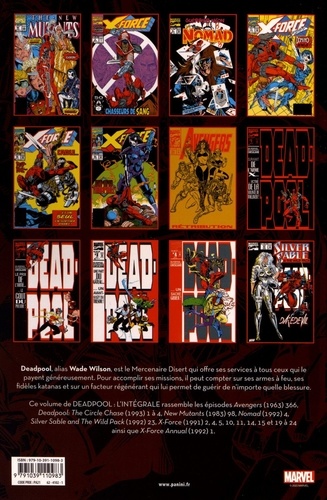 C'est le mercenaire le plus dangereux, le plus sanguinaire et le plus bavard du monde ! Adversaire de Cable et de son équipe X-Force, il est si attachant (et agaçant) qu'il finit toujours par voler la vedette aux héros de l'histoire ! Dès son arrivée, Wade Wilson, alias Deadpool, va chambouler l'univers Marvel. Suivez-le dans ses toutes premières aventures ! Le Mercenaire Disert a enfin son Intégrale ! Cet album contient les premières apparitions du personnage dans les pages de New Mutants et X-Force, mais aussi ses nombreuses incursions dans diverses séries... jusqu'à la première lui étant exclusivement consacrée ! Au dessin, des stars des années 90 comme Rob Liefeld, Joe Madureira et Ian Churchill.