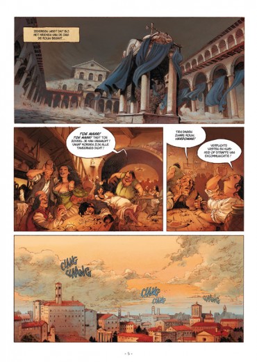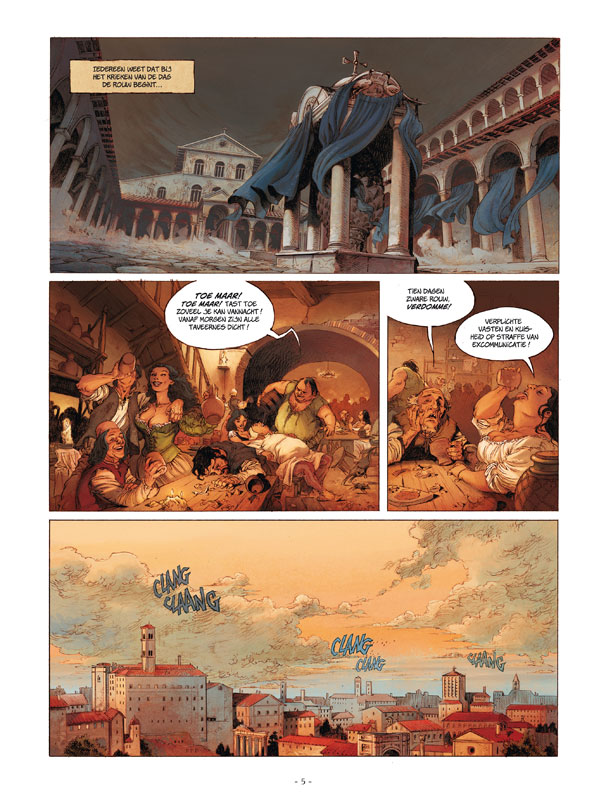 In de nacht van 18 augustus 1503 ruilt paus Alexander VI het tijdelijke voor het eeuwige, geveld door een mysterieuze ziekte. Bij het eerste schijnsel van de dageraad begint de wedloop naar de Pauselijke troon. Alle middelen lijken veroorloofd om de Heilige stoel te kunnen betreden. Voor Kardinaal Della Rovere, gezworen vijand van de clan Borgia, lijkt er maar één weg voorbestemd, zelf als hij er zijn ziel voor aan de duivel moet verkopen ... Scenarist Jodorowsky lijkt herboren te zijn, en dat bewijst hij eens te meer met deze opvolger op de serie Borgia. Handig bijgestaan door tekenaar Theo schept hij een kleurrijk beeld van Vatikaanstad aan het begin van de 16de eeuw. Serie in het verlengde van het succesvolle 'Borgia' van de hand van Jodorowsky en Manara!