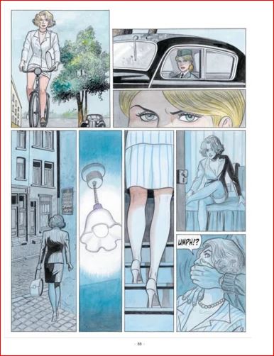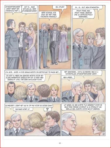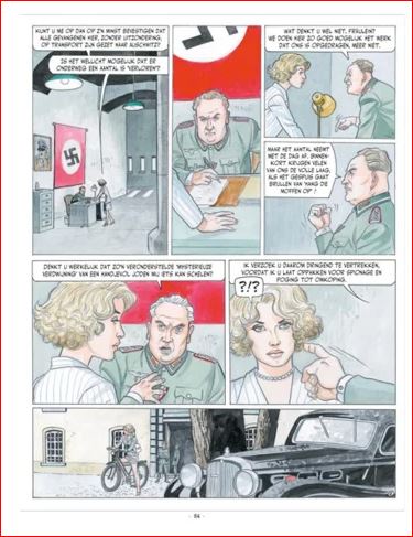 We maken ook kennis met ss-officieren die verantwoordelijk zijn voor 'knekelhuizen' waarin ongelukkige joodse meisjes een gruwelijk einde kennen. De daders maken gebruik van deportatiekampen - zoals kazerne Dossin in Mechelen - om hun meest zieke driften te bevredigen. In het dossier vernemen we het gedurfde initiatief van de 'Valse Soir'. De Duitse bezetter had de krant overgenomen - De Gestolen Soir - maar deze uitgave zullen ze toch niet graag gelezen hebben. Tekenaar Renaud (Pokervrouw, Harry Dickson) kan het niet laten om pittige beelden te maken van Katja. Echt niet gepast in dit verhaal. Of zou scenarist Gihef (Complot, Slangengebroed, Meneer Vadim) dat gevraagd hebben? Duidelijk wat reclame voor de reeks Jessica Blandy!