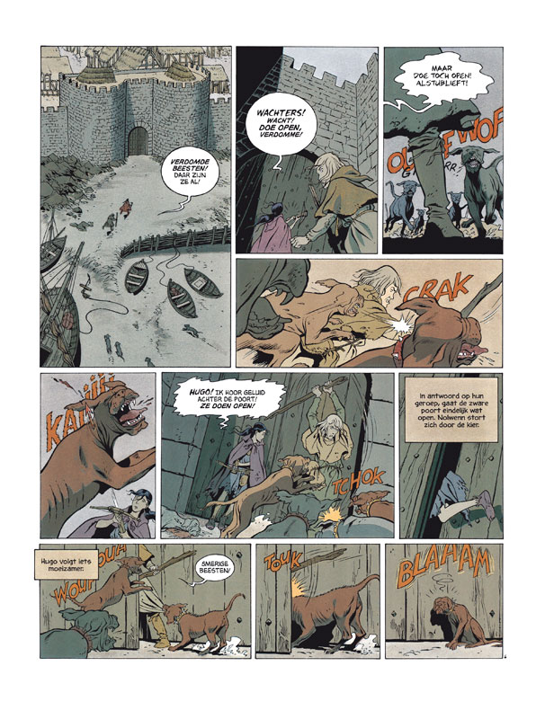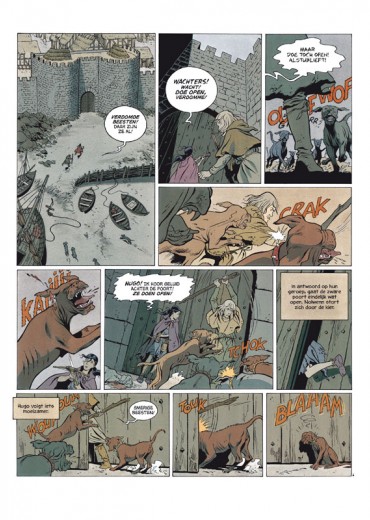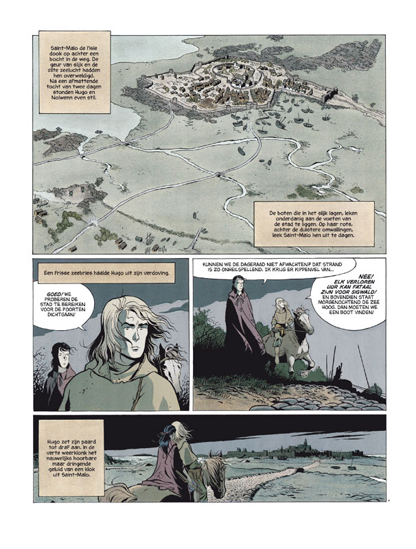 Wanneer Hugo en Nolwenn arriveren in Saint-Malo de l'Isle, gaat het al meteen grondig fout. Eén van de bewakingshonden wordt gedood, en ze worden voor dat vergrijp in het cachot gegooid. Terwijl Sigwalds been hem meer en meer parten begint de spelen, lijkt de situatie uitzichtloos ... Het middeleeuwse leven is zelden zo tastbaar geweest als in De onthoofde arenden. Gedetailleerde historische decors en avontuurlijke verhalen zorgen voor avonden leesplezier!