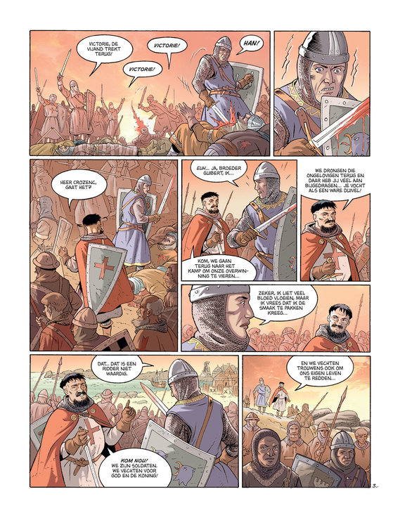 De jonge Sigwald de Crozenc sloot zich uiteindelijk aan bij de rangen van de Tempeliers om te gaan vechten in het Heilige Land. Hij heeft zijn beloften van toewijding nog niet gedaan, omdat hij door zijn moeder aangespoord om een jaar aan de zijde van de priester-ridders door te brengen. Zo hoopt ze dat hij, walgend van de oorlog, permanent wordt ontmoedigd in dienst te treden. Sigwald heeft het moeilijk om zoveel bloedvergieten in de naam van God en de Koning aan te nemen! In het gebied van Crozenc zijn de gevolgen van deze verre oorlog verschrikkelijk: de afgezanten van de koning eisen van Hugo 10.000 deniers om de kruistochten te ondersteunen en dreigen zijn land in beslag te nemen ... Deze bundeling bevat deel 25 en 26 van deze middeleeuwse avonturenreeks.
