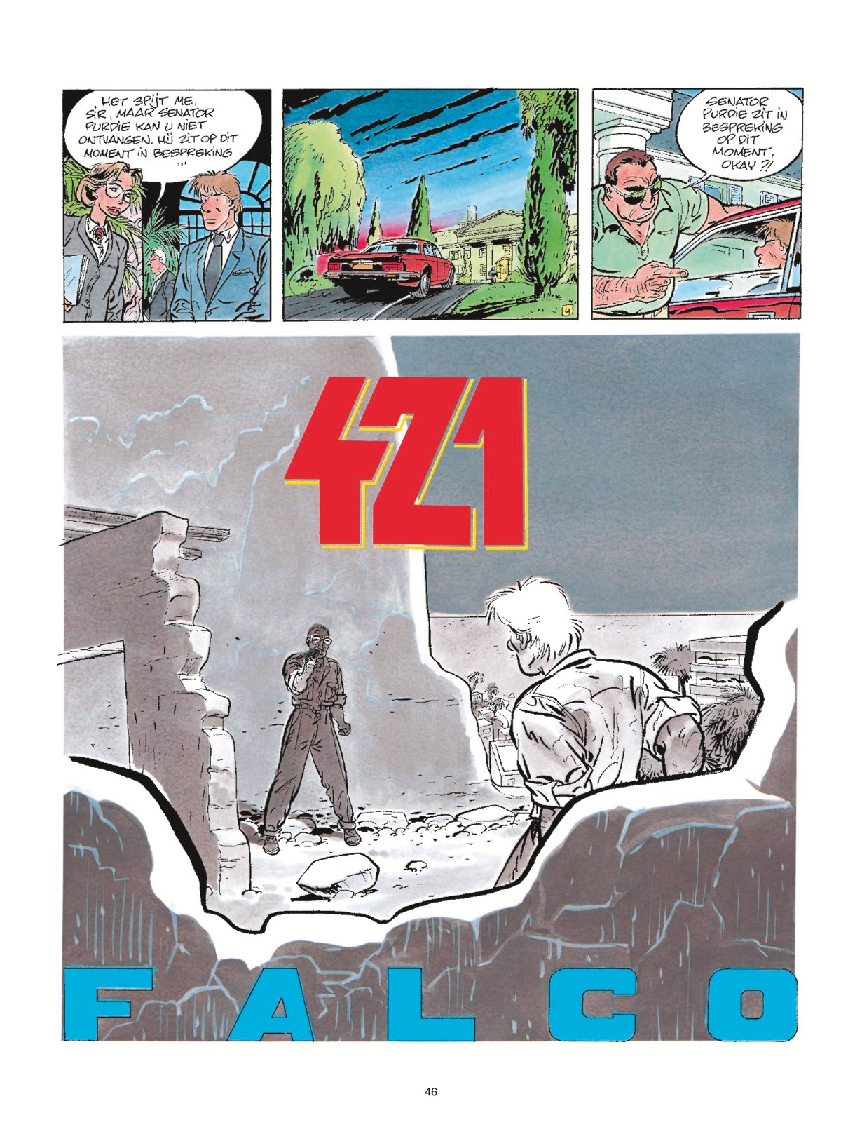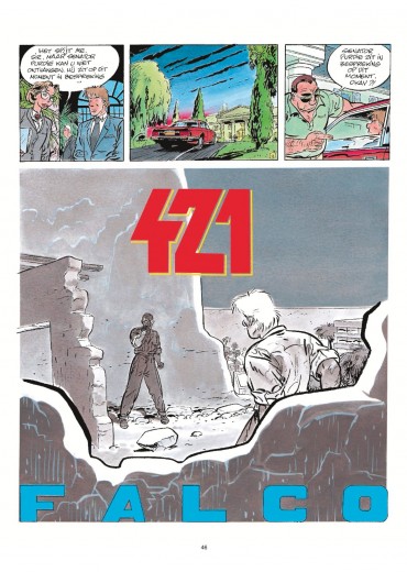Dossier: 52 pagina's door Didier Pasamonik. De verdere evolutie en de aanleidingen voor het opdoeken van de reeks, info over andere publicaties van Eric Maltaite en Stephen Desberg. De enige Robbedoes-cover is paginagroot afgebeeld met verder aankondigingen en reproducties van originelen en schetsen. Voor het eerst in het Nederlands is ook het geïllustreerde, interactieve verhaal Het Gele Potlood te lezen, dat in 1988 als bijlage bij het weekblad Spirou nummer 2625 van 3 augustus 1988 verscheen. Na de vier gepubliceerde verhalen zijn fragmenten van onvoltooide verhalen en projecten omtrent 421 bij elkaar verzameld: het 421-project Het Gevaarlijke Interval (1992), een spin-off rond Morgane Angel (1995), het herlanceringsproject Afspraak op de Khyberpas (2000) en de laatste poging, Bali Zien en Sterven (2018). Oorspronkelijke albumcovers: Paginagroot, inclusief de titelpagina's van de albums, zonder de backcovers. Compleet: Alle verhalen in chronologische volgorde. Gebundelde verhalen* Het Gele Potlood (8 pagina's uit 1988) Deel 7: Falco (45 pagina's uit 1988) Deel 8: Mistige Jaren (46 pagina's uit 1989) Deel 9: Morgane Angel (46 pagina's uit 1990) Deel 10: De Karlovdrempel (46 pagina's uit 1992) * De jaartallen zijn die van de eerste publicatie in Robbedoes en Spirou.