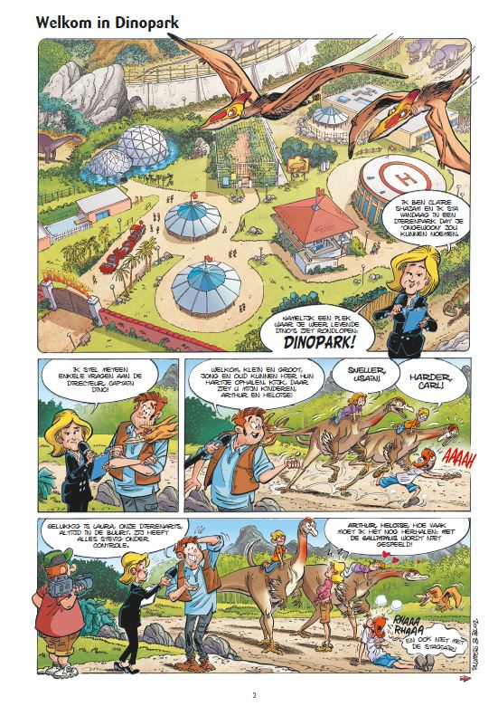 Er zijn weer dinosaurussen! Paleontologen droomden ervan, en wetenschappers zijn erin geslaagd: er lopen weer dino’s rond op aarde en ze wachten op jou in Dinopark, een unieke zoo. Hoe verzorg je een verkouden brachiosaurus van 50 ton? Waarom hebben alle raptors pluimen? Hoe zorg je ervoor dat de T-rex geen bezoekers opvreet als tussendoortje? Deze spin-off van Dino’s zit boordevol knipogen naar Jurassic Park en laat je van dichtbij kennismaken met het leven van een dinosaurus… Maar pas op, waag je maar niet té dichtbij!