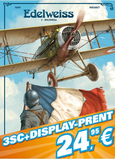 Dit display-pakket bevat een groot formaat prent compleet verhaal in 3 softcovers. Edelweiss is een Eerste Wereldoorlog-avontuur van topduo Yann en Romain Hugault (Angel Wings, De Nachtuil). 1 - Heksen van de nacht 2 - Kameraad Lilya 3 - Wulf Lilya Eerste Wereldoorlog 1917: boven de loopgraven van de slagvelden in Noord-Frankrijk en Vlaanderen, waar wanhopige fransozen en gedesillusioneerde punthelmen elkaar in de modder afslachten, creëren Franse en Duitse vliegers iets geheel nieuws. Ze vechten boven de linies genadeloze duels in de lucht uit, elke dag weer. En telkens is er maar één uitkomst: de ene piloot overleeft het, de andere is dood. Op een dag verschijnt er aan de hemel een Duits toestel, een Albatros, een dubbeldekker met een fraaie edelweiss op de bovenste vleugel. De piloot met de edelweiss, zoals hij direct al genoemd wordt, zaait dood en verderf in het Ooievaareskader, het elite-eskader van de piepjonge Franse luchtmacht. Waarom schrikt de onverschrokken toppiloot Henri Castillac, door iedereen erkend als een van de besten in het luchtgevecht, wanneer de piloot met de edelweiss zich in de strijd mengt? Heeft het misschien iets te maken met het akelige geheim dat Henri en zijn broer Alphonse met elkaar delen? En waarom is Alphonse, net als zijn broer een eersteklas piloot, de luchtmacht uit gegooid? En trouwens, wat is er nu eigenlijk jaren eerder gebeurd bij de Alma-brug in Parijs, tijdens die spectaculaire overstromingen van de Seine in januari 1910?