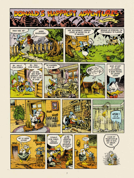 Op een blauwe maandag krijgt Donald telefoon van oom Dagobert. Die roept zijn hulp in voor een nieuwe schattenjacht. Maar Donald beseft dat hoe groot de schat ook is die hij moet gaan zoeken, zijn oom nooit tevreden zal zijn. Dagobert mag dan wel een oude krenterige kniesoor zijn, ook hij zoekt waar iedereen in de wereld naar op zoek is: geluk. Hij stuurt zijn neefje erop uit om die onbetaalbare schat te vinden. Maar voor de kolerieke en stuntelige Donald lijkt het geheim van het geluk haast onmogelijk te doorgronden ... De zoektocht naar het geluk van Donald Duck. Na de Mickey-hommages door Tebo, Loisel en Camboni & Filippi gaat de beurt naar Donald. Een doldwaas humoristisch avontuur uit de koker van de grote Lewis Trondheim (Kobijn, Donjon, Ralph Azam, Texas Cowboys en vele, vele andere). Het Disney-universum is tekenaar Nicolas Keramidas (Luuna) op het lijf geschreven.