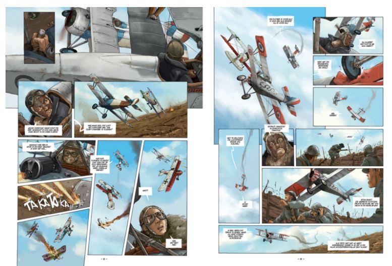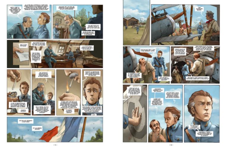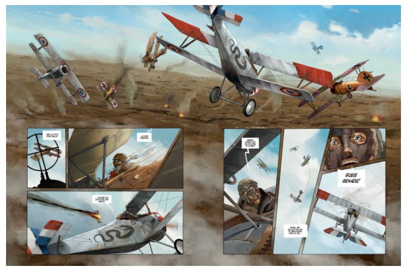 Compleet verhaal in drie delen 1917, de Eerste Wereldoorlog, het Westfront. De oorlog wordt niet alleen op land en ter zee, maar ook in de lucht uitgevochten. Piloot Alexander Marais verbergt zijn verminkte gezicht achter een leren masker. Zijn leven draait alleen nog om luchtgevechten. Daarin is hij de beste, tot de jonge opschepper Lafitte zich bij het eskader voegt. Beide mannen zijn vastbesloten om als eerste de meest beruchte Duitse gevechtsvlieger Stipetic neer te halen. De rivaliteit tussen beide mannen loopt hoog op. De verminkte veteraan en de brutale nieuwkomer moeten niet alleen elkaar weerstaan, ze krijgen ook te maken met de onberekenbare techniek uit de begintijd van het gevechtsvliegen. Voor de beschadigde Marais komt er nog een extra factor bij die hem van slag brengt: de onverwachte genegenheid van de mooie Gabrielle. Achter het masker vechten woede en liefde ook een strijd uit over wie de sterkste is. Hoog in de lucht zoeken gevechtsvliegers naar roem en eer. Wat ze vinden is maar al te vaak een gewelddadige dood. Voor liefhebbers van Romain Hugault