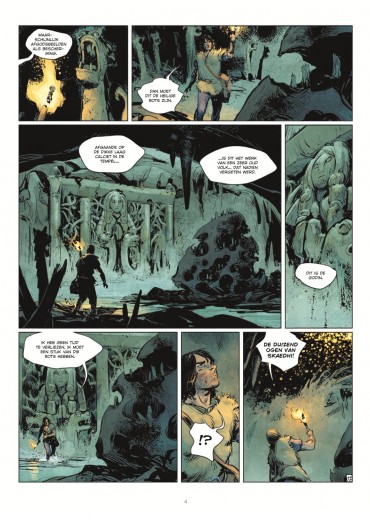 Thorgal heeft eindelijk de legendarische rots met de duizend ogen van de godin Skaedi gevonden. Wil hij Jolan en Borealis redden, dan moet hij een stuk van de mysterieuze steen uit Asgard bemachtigen en terugbrengen naar zijn wereld. Maar hij is gebeten door een rode adder en zit vast in een ondergronds doolhof. Het sterrenkind zal de hulp van een jonge slangenbezweerster goed kunnen gebruiken, als hij een kans wil hebben om de strijd tegen Odin te winnen.