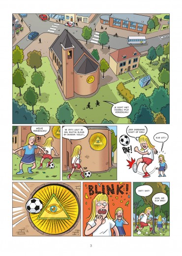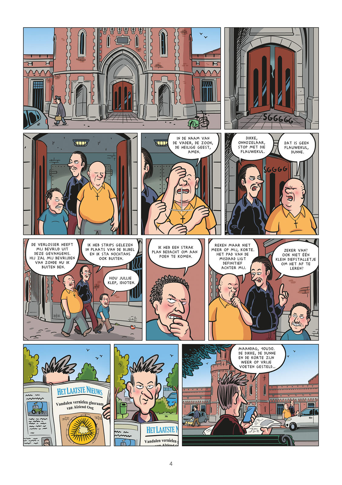 Spelende kinderen veroorzaken met een krachtig schot tegen hun voetbal per ongeluk chaos. De bal verbrijzelt het glasraam van de kerk, waarop een afbeelding van het alziend oog van God staat. De pastoor ziet hierin de voortekenen van naderend onheil en waarschuwt de gelovigen tijdens een vurige preek. Maar uiteindelijk blijkt hij vooral zelf op de proef te worden gesteld wanneer hij in het offerandemandje een geheimzinnig sleuteltje vindt. Tegelijkertijd wordt tante Maria kortstondig heel rijk, als enige erfgename van een verre oom. Het geld wordt helaas gestolen bij een inbraak. De commissaris vermoedt dat de Dikke, de Dunne en de Korte er voor iets tussen zitten. Zij zijn net ontslagen uit de gevangenis maar zouden weleens een laatste slag willen slaan. Verwarring en hilariteit troef dus, terwijl God even de zaak niet in het oog houdt…