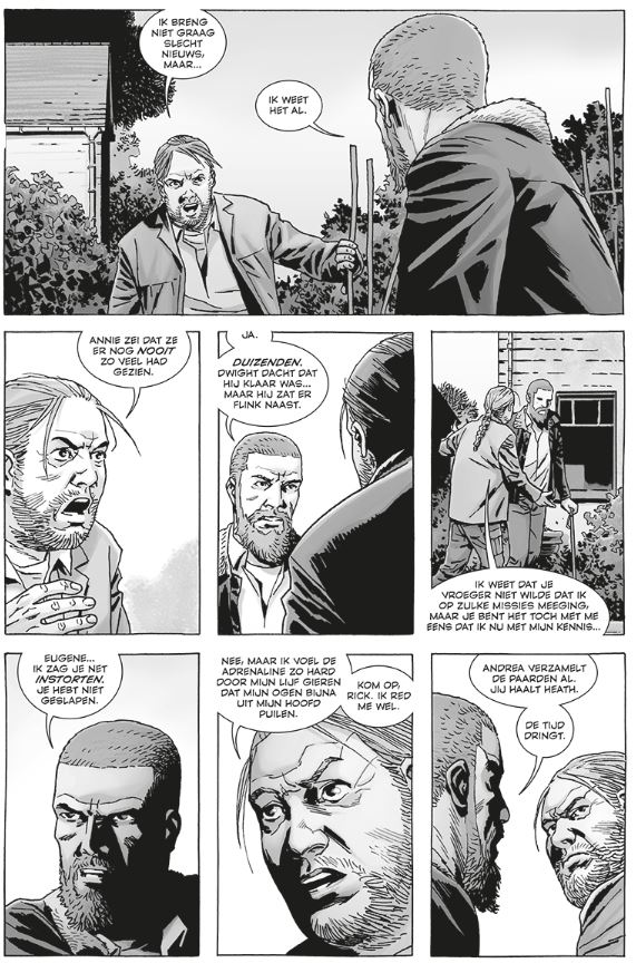 De Fluisteraars hebben Hilltop in de as gelegd, maar Dwight heeft intussen goed nieuws voor Rick. Hij en zijn troepen hebben namelijk de reusachtige horde bij Alexandria vandaan gedreven. Beta, de nieuwe leider van de Fluisteraars, is op de vlucht geslagen en de slag lijkt gewonnen. Rick weet echter wel beter. Beta heeft veel meer wandelende doden tot zijn beschikking. En ze komen naar Alexandria! Walking Dead behoort al jaren tot een van de grootste stripsuccessen in Amerika. Ieder nieuw boek staat steevast in de top-tien. Hollywood heeft het uitmuntende schrijfwerk van Robert Kirkman inmiddels ook ontdekt. De televisie-serie van The Walking Dead wordt uitgezonden op FOX. Lees ook eens Kirkmans andere horrorreeks Outcast!