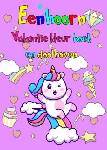 Vakantieboek eenhoorn kleur en doolhof boek. In de leeftijd van 3 tot 8 jaar.