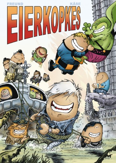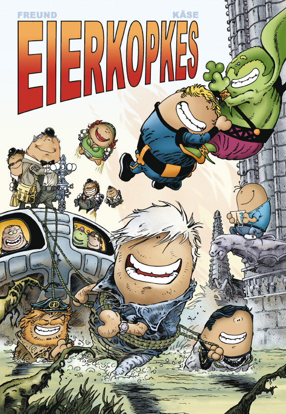 Beide hoofd-Eierkopkes Michael Käse en Frank Freund werden respectievelijk in 1966 en 1967 in Düsseldorf geboren en leven/werken vandaag nog daar. Ze leerden elkaar kennen tijdens hun schooltijd en begonnen daar met hun 'eierkopkes'. Van 1983 tot 1995 speelde Frank American Football, wat ertoe leidde dat hun eerste publicaties in het Footballmagazine en in de programmanotities verschenen. Na diverse rollenspel-illustraties en onafhankelijke strips verscheen in 1999 het verhaal 'Vakantie in Parijs' in het Duitse stripmazine Zack. Er volgden de korte strips 'Verdomme, het roer klemt', 'Limo, Laser, lauwe mensen' en 'Namens de Graaf' met de 'eierkopkes' in de hoofdrol. In 2008 had Frank zijn eerste realistische, gekleurde strip in het stripmagazine 'Perry' van Alligator Farm Verlages (Hamburg) gepubliceerd. Zijn huidige verhaal 'Gestranded' (tekst: Andreas Völlinger) verscheen net in nummer 139. Frank en Michael zijn opgegroeid met strips uit de jaren '70 en '80 en zijn vandaag geïnspireerd door striptekenaars zoals Hermann, Giraud/Moebius, Milo Manara, Travis Charest, Jordi Bernet en Katsuhiro Otomo.