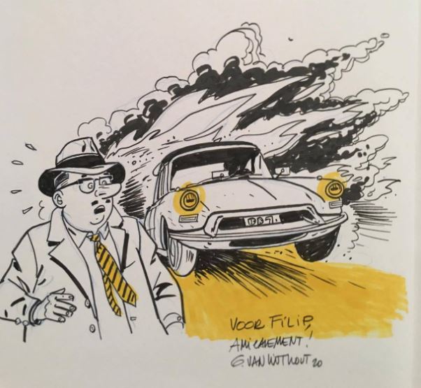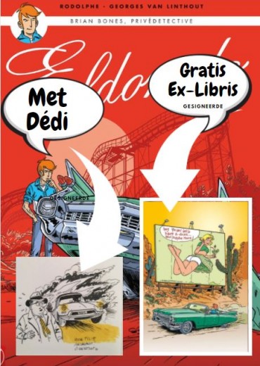 MET GEPERSONALISEERDE DEDI DOOR DE AUTEUR ( zie preview) MET GRATIS EX-LIBRIS GESIGNEERD DOOR DE AUTEUR VOOR DE EERSTE 50 KLANTEN Hoe werkt het. Na bestelling krijg je een mail met daarop de vraag voor wie de dédi is. Na 9 dagen ontvang je de strip met je gepersonaliseerde dédi door de auteur in je bus. ( Afhankelijk van de goodwill van de auteur. Pas op er resteren er nog slechts een 9 tal dus wees er snel bij. Verenigde Staten, jaren ’50/’60, actrice Carol Lorraine, de vrouw van de beroemde producer Claude Goddard, wordt gedood bij een ongeluk aan boord van zijn gloednieuwe CADILLAC ELDORADO. Wie heeft baat bij de misdaad (sorry: het ongeluk!)? Voor de echtgenoot, zonder twijfel, omdat hij door het meest ongelooflijke toeval een paar dagen eerder een levensverzekering had afgesloten in de naam van zijn vrouw, een verzekering waarvan hij de trotse begunstigde is! Hoogte van de premie? 150.000 dollar! Een bedrag dat op het juiste moment komt, omdat GODDARD op de rand van faillissement staat ... Brian Bones, die een goed reukvermogen heeft, detecteert onmiddellijk de zwendel en kan de boevenmoordenaar snel ontmaskeren! Enige probleem: tijdens het ongeval was hij het die reed. Kun je een dodelijk ongeval voorspellen terwijl je zelf in je auto rijdt?