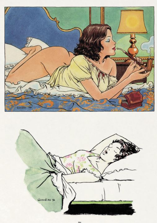 laatste exemplaar gelimiteerd op 350 exemplaren !!!!!! jawel!! gelimiteerd??? tja. dan ook nog eens een onderverdeling 200 voor de Vlaamse met EX-libris zie previews 150 voor de Hollandse afzetmarkt. Luxe met gesigneerde ex-libris Wat is het verschil met de gewone versie die volgende maand verschijnt aan 28,45 euro? Een linnen band en een gesigneerde ex-libris. géén korting op de luxe versie. Deze integrale bundelt twee oudere strips van Vittorio Giardino van wie Saga Uitgaven eerder Jonas Fink en Fatale Vakanties (her)uitgaf. Little Ego dateert van 1989 en is een hommage aan Winsor McCays Little Nemo. 'In veertien avontuurlijke dromen neemt Vittorio Giardino ons mee naar een erotische en exotische wereld.' Eva Miranda uit 2005 is een parodie op een soapopera, geschreven door Giovanni Barbieri, met een verleidelijke intrigante als spilfiguur. Dit verhaal verscheen in album bij Casterman, maar werd nooit vertaald. Beide verhalen worden ingeleid met voorwoorden en daarna staan telkens tientallen erotische illustraties met de vrouwelijke hoofdpersonages die uit portfolio's, speciale edities en luxes komen of van ex librissen,... Achterin zit ook nog een derde portfolio met extra erotische illustraties die Giardino doorheen de decennia heeft gemaakt voor diverse opdrachtgevers. Van de 160 pagina's zijn er zo'n 90 waarop dergelijk kijkplezier is verzameld, goed voor een paar honderd tekeningen. (ssz)