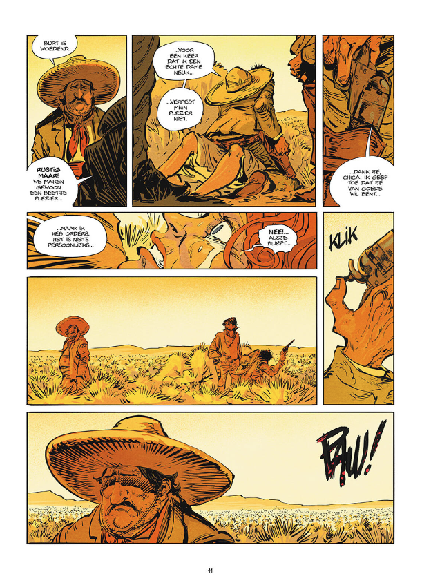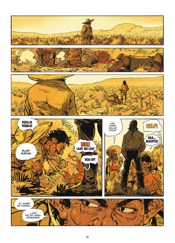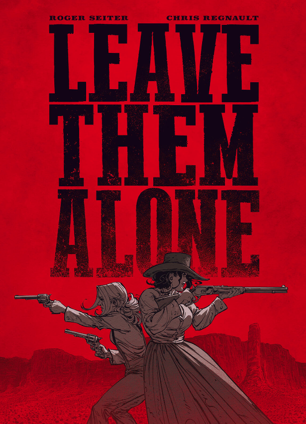 Leave Them Alone, un western brutal de 160 pages, mêle action et drame familial. Tous les éléments classiques du genre western y défilent, et la fin laisse clairement présager une suite, déjà en préparation. Derrière ce projet se trouvent le dessinateur Chris Regnault et le scénariste Roger Seiter. Regnault s’est approprié le scénario de Seiter au point d’apparaître également comme co-scénariste. Tous deux se sont déjà fait remarquer dans le western : Regnault est le dessinateur de l’album Jesse James dans la série Het Echte Verhaal van de Far West, tandis que Seiter (connu pour Alex, Lefranc, Fog, De Grote Zeeslagen) a signé des succès tels que Het Goud van Morrison, Lawmen, Stagecoach et Wild River.