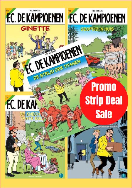 Deze Stripdeal bevat 5 strips van de stripreeks F.C. de Kampioenen voor een promotieprijs. het bevat de delen 115 116 117 118 119