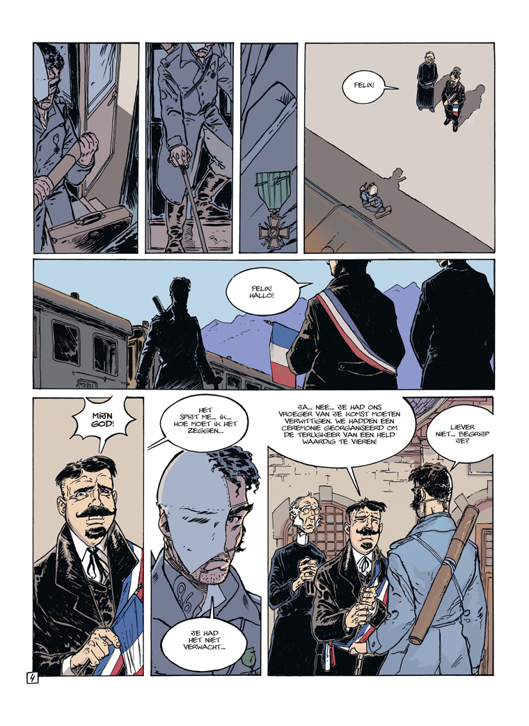 Lente 1919. Enkele maanden na de wapenstilstand keert soldaat Felix Castelan terug naar zijn geboortedorp. Maar hij is niet meer dezelfde: een Duitse obus ontnam hem de helft van zijn gelaat. Naast die lichamelijke wonde moet Felix ook nog zijn psychologische letsels zien te verwerken. Felix begrijpt dat hij het moeilijk zal hebben om zijn plaats in de gemeenschap terug te vinden naast een ontrouwe echtgenote en een zoon die zich nog nauwelijks iets van hem herinnert. Op hetzelfde moment brengt een reeks geheimzinnige moorden het dorp in beroering. Een politieagent, zelf ook een oorlogsinvalide, komt uit Parijs om het onderzoek te voeren.