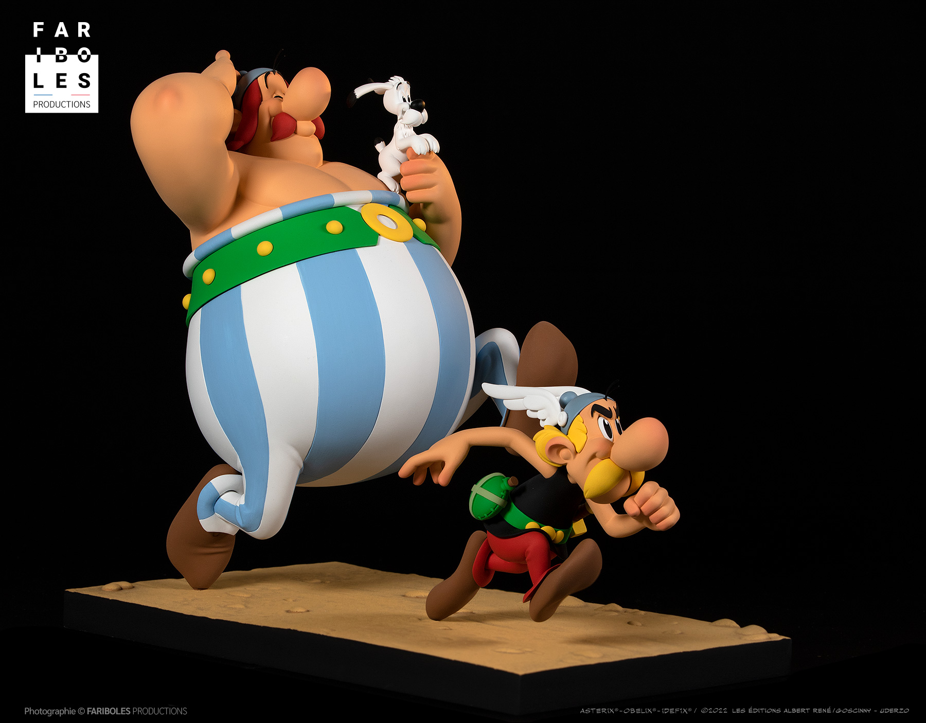 Et voici une scène spectaculaire que nous offre Fariboles Productions : ATTENTION LAISSEZ PASSER ! une course effrénée avec en tête Astérix qui a sûrement avalé un bon litre de potion magique, derrière lui notre Obélix avec Idéfix, est-ce qu'ils sont en chasse pour rattraper ces satanés romains ou bien sont-ils eux-mêmes poursuivis ????