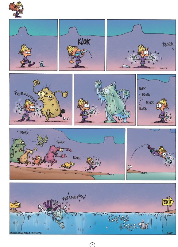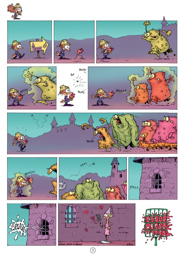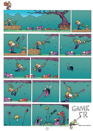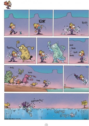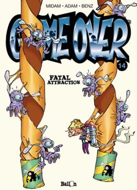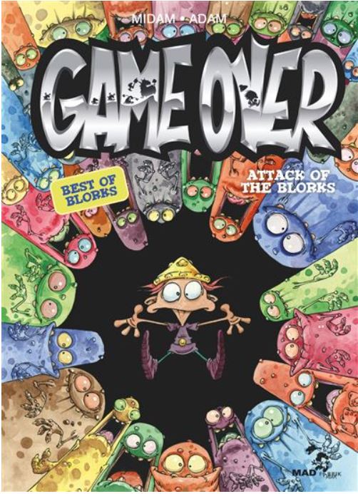 Score moyen 5 / 5Game over - ATTACK OF THE BLORKS “Midam kreeg in 1992 een leuk 'tekenjobke' in het weekblad Spirou waar hij diverse rubrieken mocht verblijden met zijn eigenzinnige stripwerkjes. Een jaar later creëerde hij het personage Kid Paddle die dé mascotte werd van een rubriek over video games. Begin jaren negentig werden video speletjes gigantisch populair en dit vooral omdat deze met veel gemak gezellig thuis gepeeld konden worden. Midam was één van de tekenaars die letterlijk op het juiste moment op de juiste plaats was. Franquin, Walthéry en Tome en Janry, om maar enkele te noemen, waren dat bijvoorbeeld ook. Ik vind persoonlijk zelf dat Midam nog een van de laatste echte vernieuwelingen is van het beeldverhaal sinds jaren. De man zelf zegt dat hij niet goed kan tekenen en bijvoorbeeld decors en auto's laat hij gewoonweg achterwege in plaats van ze te leren tekenen. Straf. Na miljoenen verkochte Kid Paddle albums introduceerde Midam in 2004 een spin off van deze reeks genaamd: Game Over. Barbaar, het virtuele video spel-figuurtje van Kid moet het telkens opnemen tegen een legertje Blorks. Dankzij zijn vernuft denkwerk kan hij telkens zo een Blork aanval pareren maar op het einde van de pagina gaat het dan toch telkens weer mis, met resultaat : game over... Het figuurtje wordt steeds weer op originele wijze naar het virtuele hiernamaals gekatapulteerd. We zien hem nogal snel gespietst, verpulvert, verplettert, verschroeid, noem maar op. Midam is een meester van de gekende 'rode draad gag' en daar hou ik van. Het grootste voordeel van de Game Over strips is dan tegelijkertijd ook hun nadeel. Er zijn geen tekstballonnetje om te lezen dus dat gaat heel vlot. Soms té vlot waardoor je deze strip in amper 5 minuutjes uit hebt. Het is dus aangeraden om dat iets rustiger aan te doen om ook sommig grappen met dubbele ondertoon niet aan je voorbij te laten gaan. Midam krijgt de laatste jaren ook veel hulp van tekenaar Adam Devreux en allerlei scenaristen. De Game Over strips zijn grappig en bekoren dus iedere gamer maar ook niet gamers zullen aan hun trekken komen. Het commerciële aspect wordt wel een beetje uitgebuit en dit is jammer. Er zijn enorm veel Kid Paddle en Game Over strips (een 35tal samen) dat het niet altijd gemakkelijk is om al deze reeksen compleet aan te schaffen. Toch vind men het nog nodig om strips uit te brengen met een compilatie van al verschenen gags. Deze best off is toch zo goed dat een nieuw te veroveren lezer sowieso de gewone reeks zal napluizen, dus zou ik zeggen : stort je gerust op de Game Over reeks, het zal u niet teleurstellen”, Nibs.