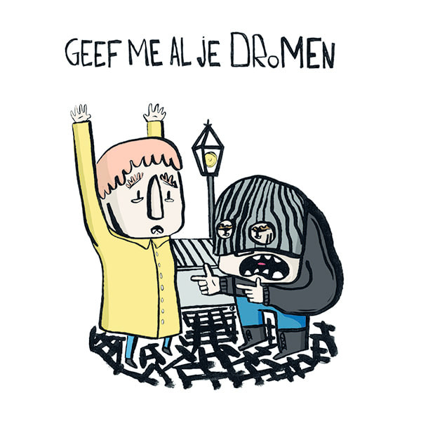 Geef me al je dromen is de tweede bundel van Maarten Van Praet (MAARTEN!) Zijn bundel hiervoor heette 'Dood, verderf en koekjes met melk'. Je snapt wel dat 'Geef me al je dromen' beter is. De titel alleen al is zo verschrikkelijk veel diepgaander. Ik bedoel, komaan. Moet je niet over nadenken. In deze bundel vind je minstens 5 cartoons. Een selectie van de (zelfverklaard) beste cartoons die verschenen op maartenisdemax.be, EOS magazine, De Standaard Avond en andere plaatsen. Waarover gaan die? Alles kapotrelativeren. Woordmopjes. Droge humor. Andere dingen. Ik zou 't zeker kopen moest ik niet mezelf zijn. - Maarten
