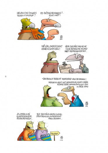 's-Hertogenbosch is letterlijk gebouwd in 'het Moer', maar maatschappelijk gezien kan het ook elders in Nederland tamelijk drassig zijn. Van Gerwens grappen blijken in deze bundel de plaatselijke actualiteit dan ook regelmatig te overstijgen. Daar komt bij dat zijn moerasbewoners tamelijk universele figuren zijn. Zijn kikkers, vogels en padden dragen nu eens een stropdas of een ambtsketen en dan weer een lading make-up of een haveloze jas, maar blijven verder gelijk. Ook niet-Bosschenaren zullen hun éigen plaatsgenoten er gemakkelijk in herkennen. In zijn column volgt Van Gerwen sinds 1995 de Bossche actualiteit. Besluiteloze bestuurders en mauwende burgers in een maatschappelijk moeras waarin niets gemakkelijk van de grond komt en je op niemands woorden kunt bouwen.