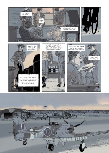 Het is 1943, middenin de Tweede Wereldoorlog. Een Belgische piloot in dienst van de RAF vliegt, zonder opdracht, naar hartje Brussel om daar het hoofdkwartier van de Gestapo te bestoken. Volgens onbevestigde bronnen vinden de Duitsers tussen de slachtoffers iemand in uniform die niet tot de naziorganisatie behoort, maar die lid is van het verzet. Zijn identificatie leidt tot de ontmanteling van een verzetsnetwerk en de dood van Belgische patriotten. Dit grotendeels geromantiseerde verhaal vormt de basis van Typhoon. In de oorlog zochten talloze jonge mensen hun heil in Engeland om van daar de strijd voort te zetten. De Engelse RAF werd een luchtmacht met piloten uit een groot aantal verschillende landen. Het album Typhoon staat model voor de lotgevallen van al die vluchtende strijders in vreemde dienst, die er het beste van proberen te maken. Een bijzondere rol is weggelegd voor de Typhoon. Met heel precies tekenwerk in sfeervolle kleuren vliegt de lezer met de Belgische piloten mee, om iets te voelen van die geweldige vliegervaring die dat toestel bood, maar ook de grote gevaren om ermee vliegen.