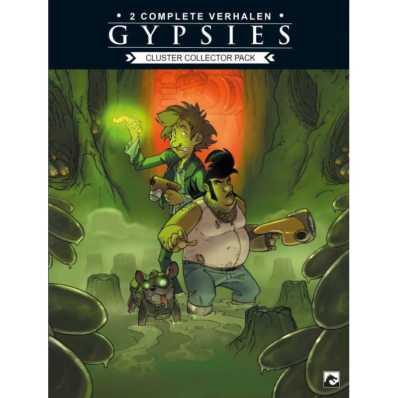 De Dark Dragon Books Cluster Collector Packs bevatten een aantal complete verhalen in hetzelfde genre. Spreekt het ene boek je aan, dan is er een grote kans dat het andere verhaal ook jouw smaak is. Veel leesplezier! Het Cluster CollectorPack - Gipsies bevat twee afgeronde verhalen: Eer van de Tzaroms Zigeuners van de zee Eer van de Tzaroms Compleet verhaal in 2 delen van de makers van Krasse knarren Even voorstellen: de familie Tzarom, beruchte intergalactische boeven. Moeder Lubna, tevens het brein van de bende, is in het gevang beland maar heeft zich verzekerd van de hulp van een jonge bijstandsadvocaat. Die worstelt zich door het dossier, daarbij absoluut niet geholpen door zijn uiterst merkwaardige cliënten die zich niet in het minst voor het proces interesseren. Tenzij het uitdraait op zo’n winstgevend zaakje waarvoor deze familie een fijne neus heeft! Zigeuners van de zee 'Piraat. Dan weet je zeker dat je op een dag aan een touw bungelt bij de ingang van een haven.' Nadau is een jonge, getalenteerde meubelmaker. Hij wordt verliefd op Angelina, een zigeunerin uit de omgeving, maar moet samen met haar vluchten na een pittige ruzie met haar familie, pardon: hun familie. Want zijn Angelina blijkt twee tweelingzusjes die samen zijn vrouw worden. Rond dit gegeven draaien de makers Stéphane Duval en Philippe Bonifay een dynamische serie in elkaar die het klassieke piratenverhaal net even een iets andere wending geeft. Natuurlijk is alles aanwezig wat je van een avontuur als dit mag verwachten: zwaardvechters, exotische locaties, enteringen en de machtige, prachtige, maar levensgevaarlijke zeeën van het Caraïbisch gebied. In hun zoektocht naar een geschikte plaats om zich te vestigen nemen Nadau, Leanne en Angelina het in hun zwerftocht op tegen vooroordelen, zeeschuimers en de domheid en het geweld van hun medemens. Philippe Bonifay geeft het piratenavontuur een eigentijdse make-over, dat samen met de scherpe pen van Stephane Duval een kleurrijk beeld schetst van de 17de eeuw. Compleet verhaal in 2 delen.