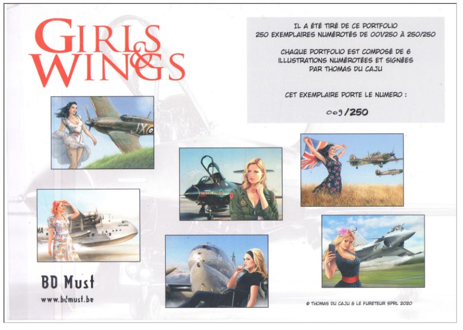Portfolio met 6 A4-illustraties met heldinnen uit het artbook Girls & Wings. 250 genummerde en gesigneerde exemplaren Portfolio formaat 30 x 21 cm 6 genummerde en gesigneerde illustraties