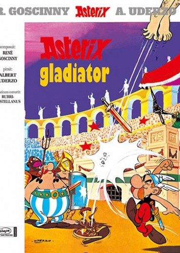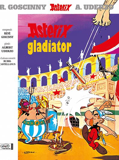 Latijnse versie Zelfs al hebben ze liever dat Assurancetourix een toontje lager zingt, wanneer hij antvoerd wordt door Romeinen, gaan Asterix en Obelix hem achterna. Ze komen in het grootse Rome terecht. Zullen zij ongewenst voor brood en spelen zorgen? Een belangrijke gebeurtenis: de piraten doen hun intrede in de Wereld van Asterix! Asterix is duidelijk een filmliefhebber. De training van de gladiatoren doet denken aan de film Spartacus van Stanley Kubrick (waarvan de hoofdrolspeler Kirk Douglas op een opmerkelijke manier opduikt in De beproeving van Obelix), terwijl de race van de strijdwagens doet denken aan Ben Hur. Later zal de film Cleopatra van Mankiewicz de inspiratie vormen voor de strip Asterix en Cleopatra. Zonder dat de auteurs zich hiervan bewust zijn, krijgt hun stripverhalenserie een steeds groter lezerspubliek en wordt tenslotte een grote topper voor de uitgever. De toverkracht doet zijn werk.
