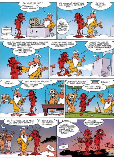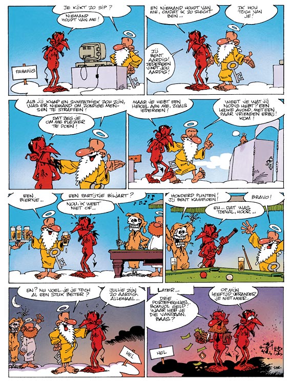 Je had Hem misschien niet meteen herkend, maar Hij is het wel. The Big Boss Himself! Snel ontstemd en gegriefd, ontgoocheld in de mensen. De havannaroker in den Hoge is ongelukkig want het gaat slecht met de Kerk. Mensen kennen nog nauwelijks de weg naar Zijn huis, het aantal roepingen loopt dramatisch terug, de concurrentie is genadeloos. Kortom: het gaat belabberd met de business. De Almachtige probeert het koste wat het kost Zijn marktaandeel terug te winnen. Als het moet zal Hij daarvoor mirakels en martelaars inzetten en een zondvloed over de wereld storten. En om zo snel mogelijk zoveel mogelijk zieltjes voor Zich te winnen, zal Hij ervoor zorgen dat wij ons doodlachen ... Liefst nu meteen!