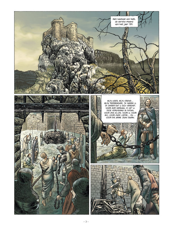 Guilhem Roché, de wonderbaarlijke genezer, heeft zijn geheugen terug! De aanwezigheid van zijn broer en Nita heeft hem geholpen om zich te herinneren wie hij was ... En meer dan dat, het heeft hem geholpen de identiteit van de duistere ridder te achterhalen, met wie hij een hele nacht gestreden heeft. Terwijl Guilhem wordt meegezogen in zijn liefde voor Nita, beschermt de duistere ridder zijn perfectus ... Makyo heeft z'n sporen als scenarist al ruimschoots verdiend. Het land van Langvergeten, De cyclus van Twee Horizonten, Grimlein Lederwant en Een hart voor IJsland zijn maar enkele voorbeelden van topseries uit z’n lange carrière. Italiaans tekenaar Calore levert, na enkele proefprojecten, met deze historisch onderbouwde serie zijn visitekaartje op een stijlvolle wijze af.