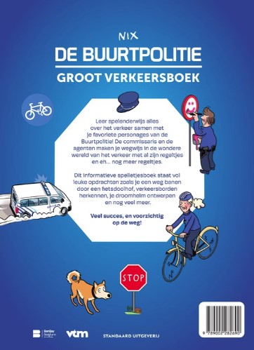 Apprends tout sur la circulation de manière ludique avec tes personnages préférés de La Police de Quartier ! Le commissaire, les agents, Gonda et tante Maria : ils te guideront tous dans le monde fascinant de la circulation avec toutes ses règles et euh… encore plus de règles. Ce livre de jeux éducatif est rempli de tâches amusantes, comme te frayer un chemin à travers le labyrinthe à vélo, relier les panneaux de signalisation, concevoir ton casque de rêve, et bien plus encore !
