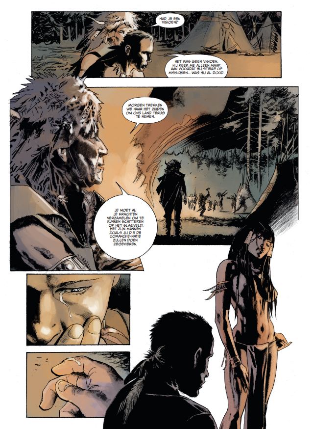-10% op alle nieuwe DDB uitgaven (normale prijs = 29,95 euro) Het eerste stripboek van de romanschrijver Jérémie Guez, The Red Clay Chronicles, is een wilde en compromisloze western, meesterlijk getekend door Roland Boschi. Een zoektocht naar wraak in een land dat zijn wortels in de identiteit van de mens verankert. En de mens is de gevangene van de ruige woestijn... Kansas, 1854. Een kind weet te ontsnappen aan het bloedbad dat zijn familie uitmoord, uitgevoerd door een bende desperados. Hij wordt opgenomen door de Comanches terwijl hij ronddwaalt, uitzinnig, midden in het bos. Hij wordt een volwaardig lid van de stam, getraind om te doden. Zijn naam is Red Clayen en als kind neemt hij al deel aan ongelooflijk gewelddadige aanvallen. Zijn witte huid is een troef om in vijandelijk gebied te infiltreren. Maar nadat hij een man is geworden, bereidt Red Clay zich voor om naar Texas te vertrekken om daar deel te nemen aan de Indiase oorlogen tegen de Verenigde Staten en Mexico. Maar voordat hij zich van de overwinning van de Comanche-natie kan verzekeren, heeft hij een nog een oude schuld te vereffenen ..