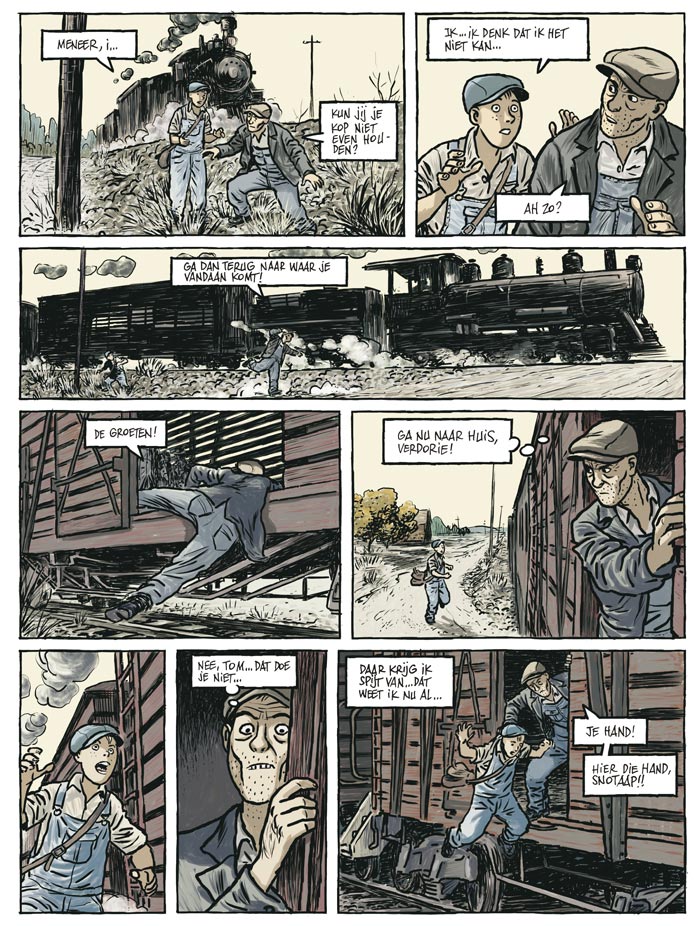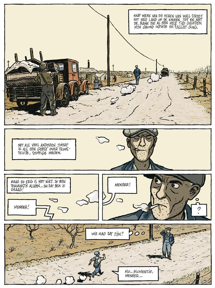 Tijdens de crisis van 1929 trekt een man door de States, op zoek naar een verdwenen kind. Het wordt een bittere reis in een land waar dromen zijn geweken voor demonen ... Antunes en Martin schetsen geen beeld van de American dream. De setting is die van de stoffige routes van het zuiden en duizenden homeless people die door de crisis van 1929 hun huis uit zijn gejaagd. Eén onder hen, Tom, is op de vlucht voor het verleden, dat niet fraai moet zijn geweest. Maar de man, die zich koestert in stilte en eenzaamheid, gaat in op de vraag om een vermist kind te zoeken. Het land dat hij tijdens zijn tocht leert kennen, staat bol van geweld, racisme en onrecht. De crisis die in het land heerst, drijft alle duivels ten top.