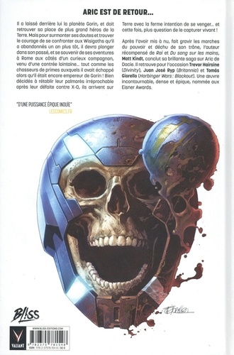 Aric est de retour... Il a laissé derrière lui la planète Gorin, et doit retrouver sa place de plus grand héros de la Terre. Mais pour surmonter ses doutes et trouver le courage de se confronter aux Wisigoths qu'il a abandonnés un an plus tôt, il devra plonger dans son passé, et se souvenir de ses aventures à Rome aux côtés d'un curieux compagnon, venu d'une contrée lointaine... tout comme les chasseurs de primes auxquels il avait échappé alors qu'il était encore empereur de Gorin ! Bien décidés à rétablir leur palmarès irréprochable après leur défaite contre X-O, ils arrivent sur Terre avec la ferme intention de se venger... et cette fois, plus question de le capturer vivant ! Après l'avoir mis à nu, fait gravir les marches du pouvoir et déchu de son trône, l'auteur récompensé de Rai et Du sang sur les mains, Matt Kindt, conclut sa brillante saga sur Aric de Dacie. Il retrouve pour l'occasion Trevor Hairsine (Divinity), Juan José Ryp (Britannia) et Tomás Giorello (Harbinger Wars : Blackout). Une oeuvre incontournable, dense et épique, nommée aux Eisner Awards.