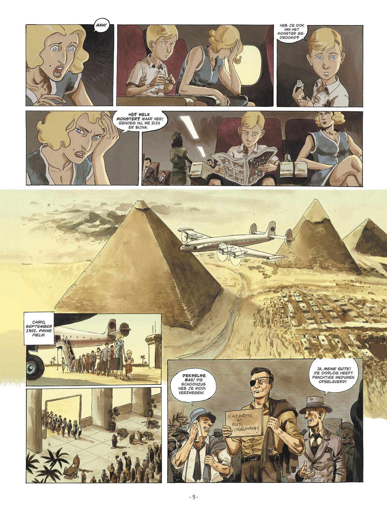 Score moyen 3 / 5Het is pas tijdens de Tweede Wereldoorlog dat er samenhang en coördinatie ontstond tussen de verschillende inlichtingendiensten in Amerika. Dan ontstond het overkoepelende OSS, die opgevolgd wordt door de CIA als de oorlog afgelopen is. Het is daar waar deze reeks inpikt. De CIA zendt in 1951 2 geheime agenten naar Caïro in Egypte, omdat zich daar een voormalig nazi-ingenieur – Manfred Fürbringer - schuilhoudt. Ze willen zijn kennis inzetten in de strijd tegen de Sjovets in de Koude Oorlog die dan volop woedt. Kathryn Ingelmann (haar Duitse schuilnaam) haalt haar zoon Rudi terug uit het weeshuis, om samen met haar schoonbroer Max naar Caïro te emigreren. Daar zenden ze Rudi naar de plaatselijke school, om in contact te komen met de zoon van Fürbringer. Die zou donker haar en een litteken op zijn rechter zij hebben. Rudi komt zo Willy op het spoor, die geen gemakkelijk kereltje blijkt te zijn op het eerste zicht. Zo vader, zo zoon ? Zal het de Amerikanen lukken om Fürbringer uiteindelijk te vinden en hem gemakkelijk mee te krijgen ? Scenarist Frank Giroud (De cirkel van Minsk, XIII Mystery,…) is helaas vroegtijdig overleden, waarbij deze reeks afgewerkt is door Laurent Galandon. Dit eerste verhaal is op zich ok opgebouwd maar weet in mindere mate te boeien. Komt dit door te weinig actie en spanning ? Het is wel zo dat ze vrij vlot de ingenieur terugvinden. Ook de tekeningen en inkleuring bieden weinig meerwaarde. Tekenaar Olivier Martin tekent alles vrij eenvoudig uit zonder al te veel detaillering, zodat het realistische verhaal snel diepgang mist. Dit eerste deel weet minder te overtuigen, maar de reeks begint pas bij dit deel met een onzichtbaar conflict dat bijna 50 jaar geduurd heeft. Er volgen dus nog wel wat delen die hopelijk wat meer actie en mysterie brengen."