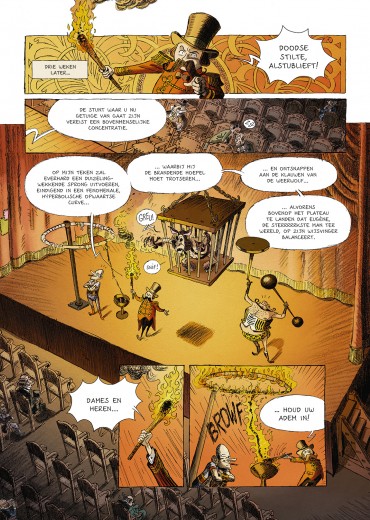 Krachtpatser, menselijke kanonskogel, messenwerper en weerwolf, de leden van het vrolijke gezelschap van het Cabaret der Schaduwen hebben allemaal een onmiskenbaar talent... voor trucage en illusie. Maar in een tijd waarin de Parijse elite enkel nog zweert bij films, zijn hun kunsten niet langer voldoende om de menigte te bekoren. Wanneer de onbeschrijfelijke professor Pipolet hen voorstelt om de wereld te redden, breekt voor hen het moment aan om werkelijk... spectaculair te zijn. Ieder deel van De Spectaculairen is een afgerond verhaal. Het Cabaret der Schaduwen luidt als volgt: 'Krachtpatser, menselijke kanonskogel, messenwerper en weerwolf, de leden van het vrolijke gezelschap van het Cabaret der Schaduwen hebben allemaal een onmiskenbaar talent... voor trucage en illusie. Maar in een tijd waarin de Parijse elite enkel nog zweert bij films, zijn hun kunsten niet langer voldoende om de menigte te bekoren. Wanneer de onbeschrijfelijke professor Pipolet hen voorstelt om de wereld te redden, breekt voor hen het moment aan om werkelijk... spectaculair te zijn.'
