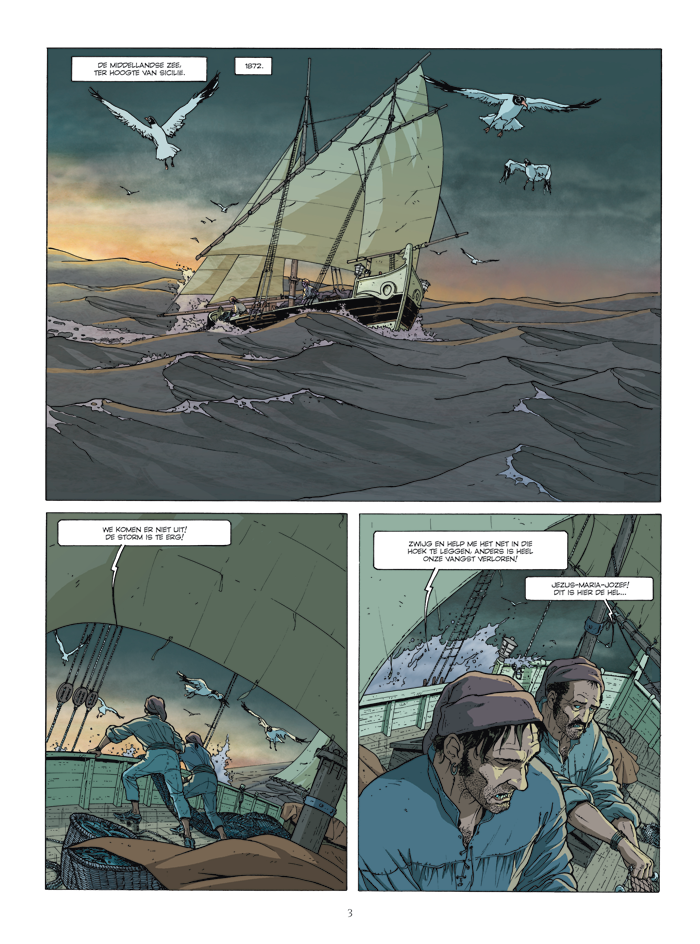 1872. Voor kust van Sicilië. Een vissersboot slaat tijdens een storm op zee te pletter op een eiland. Enkele weken later treft een ander schip vol wetenschappers, geologen en cartografen tijdens hun onderzoek naar het woeste landschap rondom de vulkaan Etna de wrakstukken. Daar doen ze een ontdekking die niet alleen de geschiedenis, maar ook de toekomst op zijn kop zal zetten. De pijl van Nemrod is een reeks van zeven delen waarbij iedere tijdsperiode getekend wordt door een andere tekenaar.