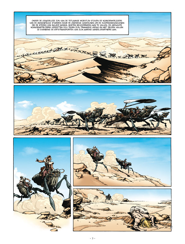 Nao's situatie is uitzichtloos. Na de aanval van koningin Marachna staat hij er alleen voor, temidden van de desolate en uitgestrekte zandvlaktes van Tetlaan. Aquablue is een serie vol actie en spanning, maar de sf wordt ook gekenmerkt door een ecologische ondertoon.