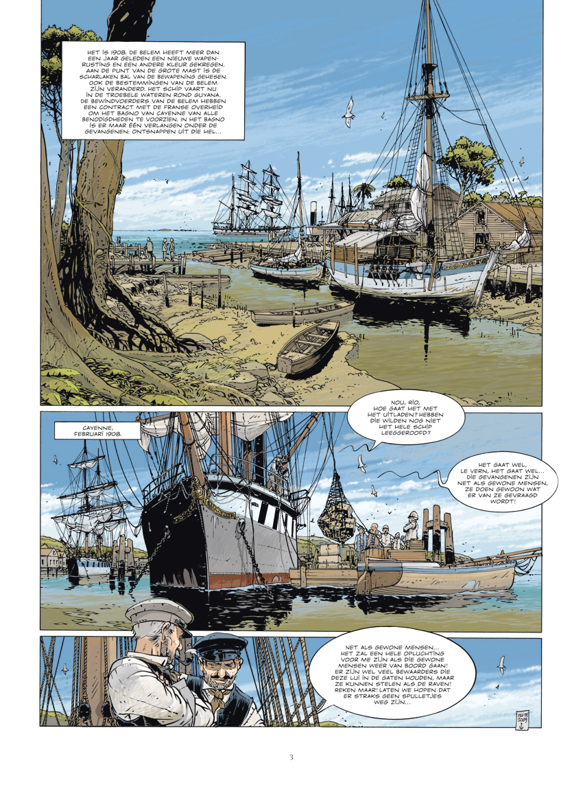 Lees en ervaar de avontuurlijke en spannende reizen van het koopvaardijschip Belem. In opdracht van de Franse overheid meert koopvaardijschip Belem, eigendom van rederij Demange, aan bij de kust van Guyana om het bagno van Cayenne, de beroemde strafkolonie, te bevoorraden. Is dit een reis zoals vele andere? Zeker niet. Het gevaar is overal. De menselijke ellende is overal. De onzekerheid is overal. De verstikkende hitte en vochtigheid zijn overal. En de Belem bevindt zich weer in het hart van uitzonderlijke historische gebeurtenissen, met grote precisie en in weergaloze stijl weergegeven door tekenaar Jean-Yves Delitte.