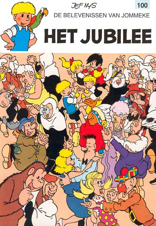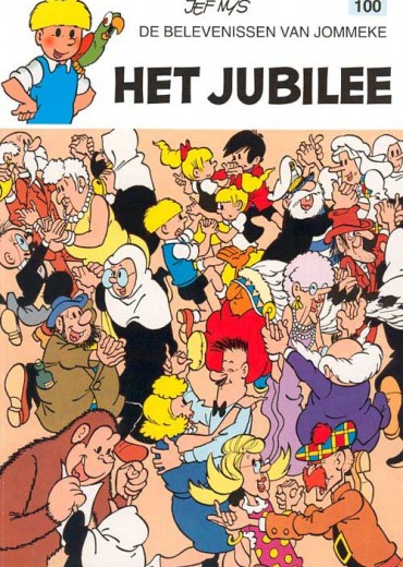 Het is feest in Zonnedorp en dat zullen ze geweten hebben: het honderste album/avontuur wordt gevierd. En niemand minder dan superschurk is de inrichtende partij. Wat heeft hij nu op zijn kerfstok dat hij met zo’n idee komt aandraven. Maar al wat hij illustreert is nobel zodat we toch in zijn goedheid moeten geloven. Allen passeren ze de revue om Jommeke te feliciteren. Madam Pepermunt heeft zelfs een gouden standbeeld voor Jommeke meegebracht. Dat zou wel eens een gegeerd object kunnen worden voor sommige aanwezigen ...