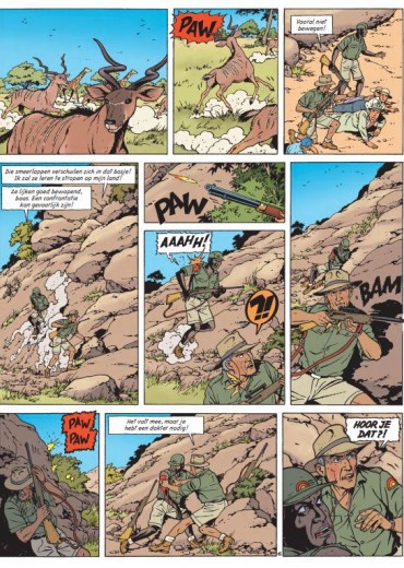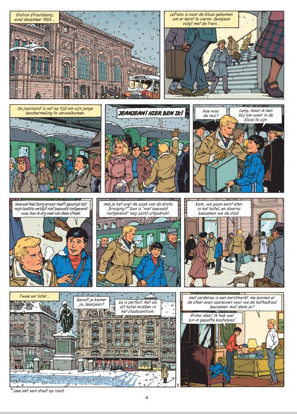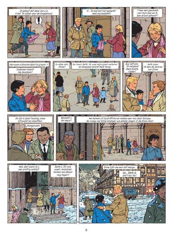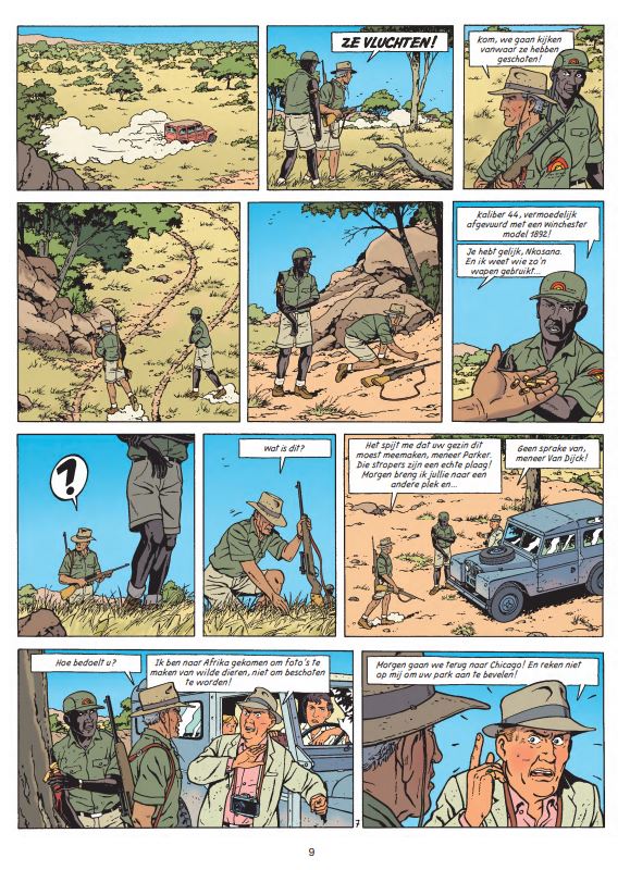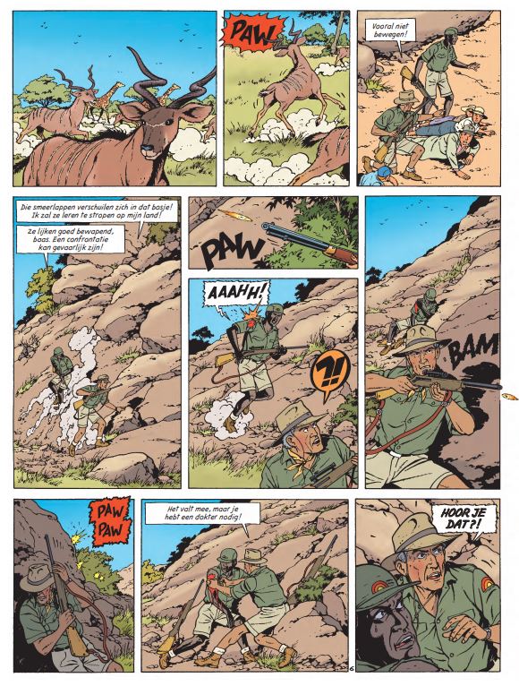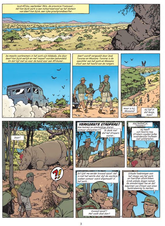 Het verhaal begint in de Alsace, juist voor Kerstmis, in het Oosten van Frankrijk op dezelfde plaats als het album “ Het sein op Rood” daarna vertrekken we naar Zuid-Afrika…. Lefranc, het alter ego van Alex! 68 jaar oud en nog geen rimpeltje te bespeuren…. Het eerste album Het sein staat op rood voorspelt reeds het volledige decor van de reeks. Guy Lefranc, blonde reporter krijgt onmiddellijk een geducht tegenstander: Axel Borg. Axel is een manipulator die de toekomst van de wereld in gevaar brengt door een duivelse samenzwering. Daarbij komt een grote dosis mysterie, een vleugje Science-fiction, een held met puur karakter, een flamboyante slechterik, een sympathieke inspecteur, een frêle jongen en je hebt alles wat de reeks nodig heeft om een succes te worden en te blijven. 1950, een reis naar de Vogezen inspireerde Martin om een verhaal te maken over de tunnel van Bussang, nu 68 jaar later speelt het nieuwe avontuur zich terug af in diezelfde regio. In 1952 verschijnt het eerste verhaal in het weekblad Kuifje. Pas in 1954 verschijnt het album in zijn legendarische vorm met een rode linnen rug. Door het vele werk met de reeks Alex kon hij pas in 1959 het tweede album De Vlammenzee uitbrengen. Martin zal nog zelf één album tekenen namelijk het derde Giftige Sneeuw in 1965. Vanaf dan neemt Bob De Moor het over die dan werkte in de Studios Hergé. Zijn eerste album was Het hol van de Wolf en dit wordt dan ook zijn laatste album door tijdsgebrek. Daarna neemt Chaillet over met het eerste album De Poorten van de Hel en tekent 9 verhalen voor de reeks. Daarna is Christophe Simon aan de beurt die onlangs de strip KIVU met Jean Van Hamme tekende. Hij tekende 2 episodes ( De colonne en El Paradiso) Vanaf 2004 verkoopt hij de rechten aan Casterman die dan ervoor zorgt dat de reeks de nodige commerciële input krijgt. Verschillende auteurs komen dan de reeks vervoegen onder het toeziend oog van Martin en na zijn dood in 2010 is het toezicht onder een comité waarin zijn 2 kinderen zetelen. Hierna volgen enkel auteurs die aan de reeks werkten vanaf dan: Carin, Weber, Jacquemart, Maury, Delperdange, Drèze, Taymans, Régric, Robberecht, Alvès, Cortegianni, Seiter, Regric tekende ook speciaal voor de 60 verjaardag 4 nieuwe covers gebaseerd op schetsen die door Martin gerealiseerd waren net voor zijn dood. Regric tekende ook nog drie albums in de reeks de reizen van lefranc ( De Luchtvaart en de verovering van de Ruimte) inhoud: Op vakantie in de Elzas leren Jean-Jean en Lefranc Eline Van Dijck kennen. In Zuid-Afrika baat haar vader safaripark Van Dijck uit, een veilige thuishaven voor vele wilde dieren en een trekpleister voor nieuwsgierige en avontuurlijke toeristen. Maar de laatste tijd gebeuren er vreemde dingen in zijn domein: er worden dieren dood aangetroffen en er komen steeds minder toeristen. Na een lange dag op de ski’s worden Jean-Jean en Lefranc gewekt door geschreeuw: Eline is ontvoerd. Waarom is dit jonge meisje in volle Apartheidscrisis ontvoerd? Wie heeft het op Geert Van Dijck gemunt?