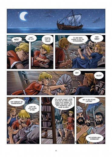 Gestrand op een eiland zijn de gevaren talrijk. Terwijl ze ontsnappen aan de Feniciërs die hen als slaven hielden, komen Alex en Alexia op Sardinië terecht. Daar ontdekken ze een bende verloren kinderen, net als zij. Ze leven van kleine plunderingen en diefstallen. In deze vreemde bende zitten Grieken, Sardiniërs, Galliërs, Egyptenaren, Wolofs... De jongere kinderen stelen, de oudere jagen. Deze groepheeft de laatste tijd helaas te maken gehad met verdwijningen. Nadat Alex de groep redt van de dieven van een ontevreden boer, wordt hij tot leider van de groep benoemd. Tot ongenoegen van Viriato, die tot dan toe aan het hoofd van de groep stond… Striptekenaar Libessart Laurent kennen enkele van jullie waarschijnlijk van de reeks Morea die indertijd startte bij Talent. Stripscenarist is Marc Bourgne kennen we ook van volgende reeksen waarvan hij deels scenarist of tekenaar is een all round talent dus. • De Piraten van Barataria • Frank Lincoln • IRS ALL Watcher • Michel Vaillant Seizoen 2 • Op Oorlogspad • Reiziger • Roodbaard • > Het Pelicaan Protocol • Vella Astorix, de vader van onze held, is een slachtoffer van een vreemd complot. Terwijl hij Graccus moet ontmoeten , vinden we in het bezit van vergif en Zwitsers goud. Ondertussen is Alex ontwaakt uit een coma door zijn zware val, bij zijn oom Omnios, en probeert een man met een kap om hem te vermoorden. Deze is nauwelijks hersteld, de mannen van Astorix waarschuwen Omnios dat De Romeinen de boerderij van hun leider in brand proberen te steken. Allex zal proberen zijn vader vrij te pleiten en erachter te komen verantwoordelijk voor dit....... Na Alex Senator nu ook een spin-off over Alex' jonge jaren. Op basis van gedegen historische research, naar het voorbeeld van Jacques Martin. Met een historisch dossier achteraan. Scenario van Marc Bourgne (tekenaar van Michel Vaillant en scenarist van De Piraten van Barataria) en tekenwerk van Laurent Libessart (Moréa).