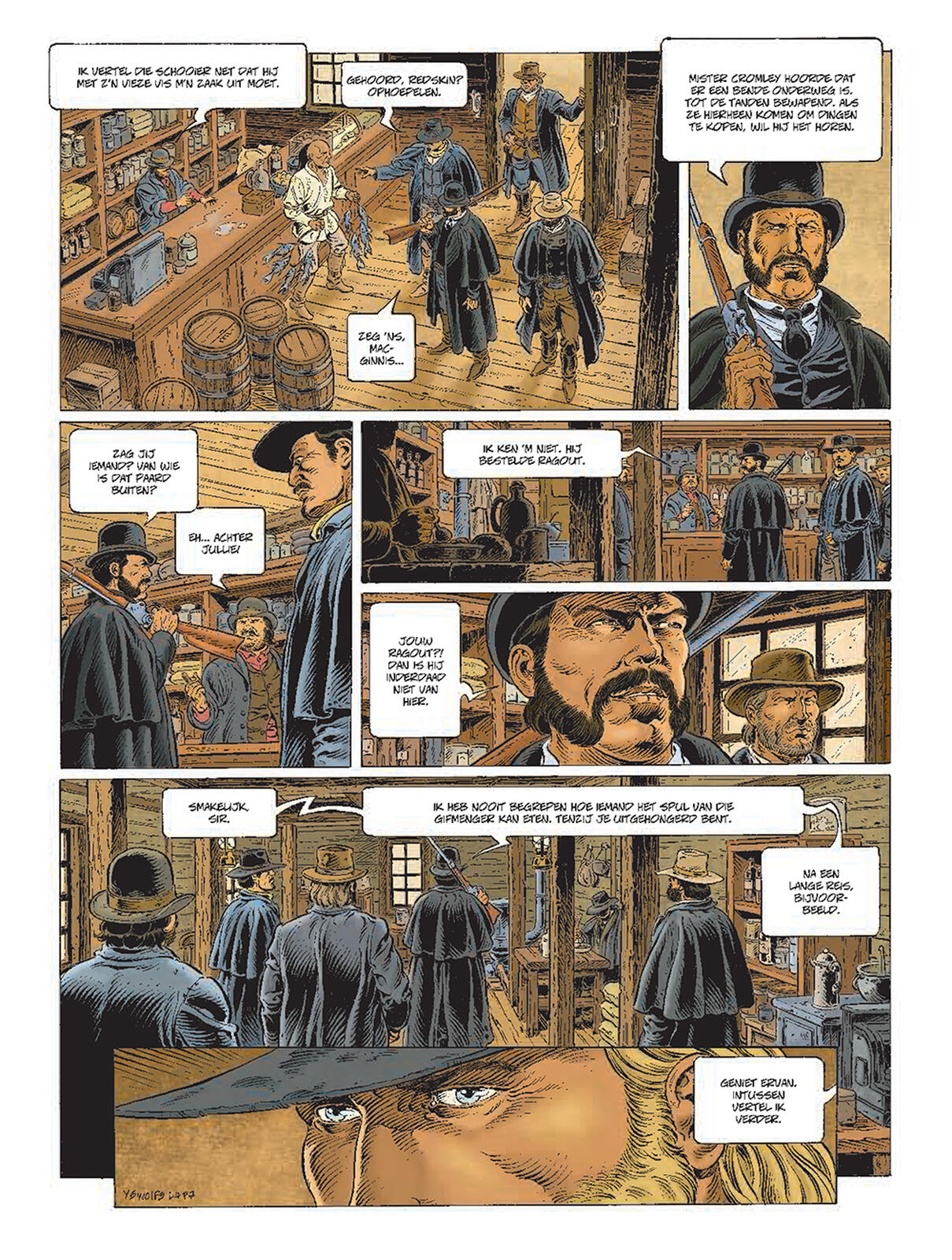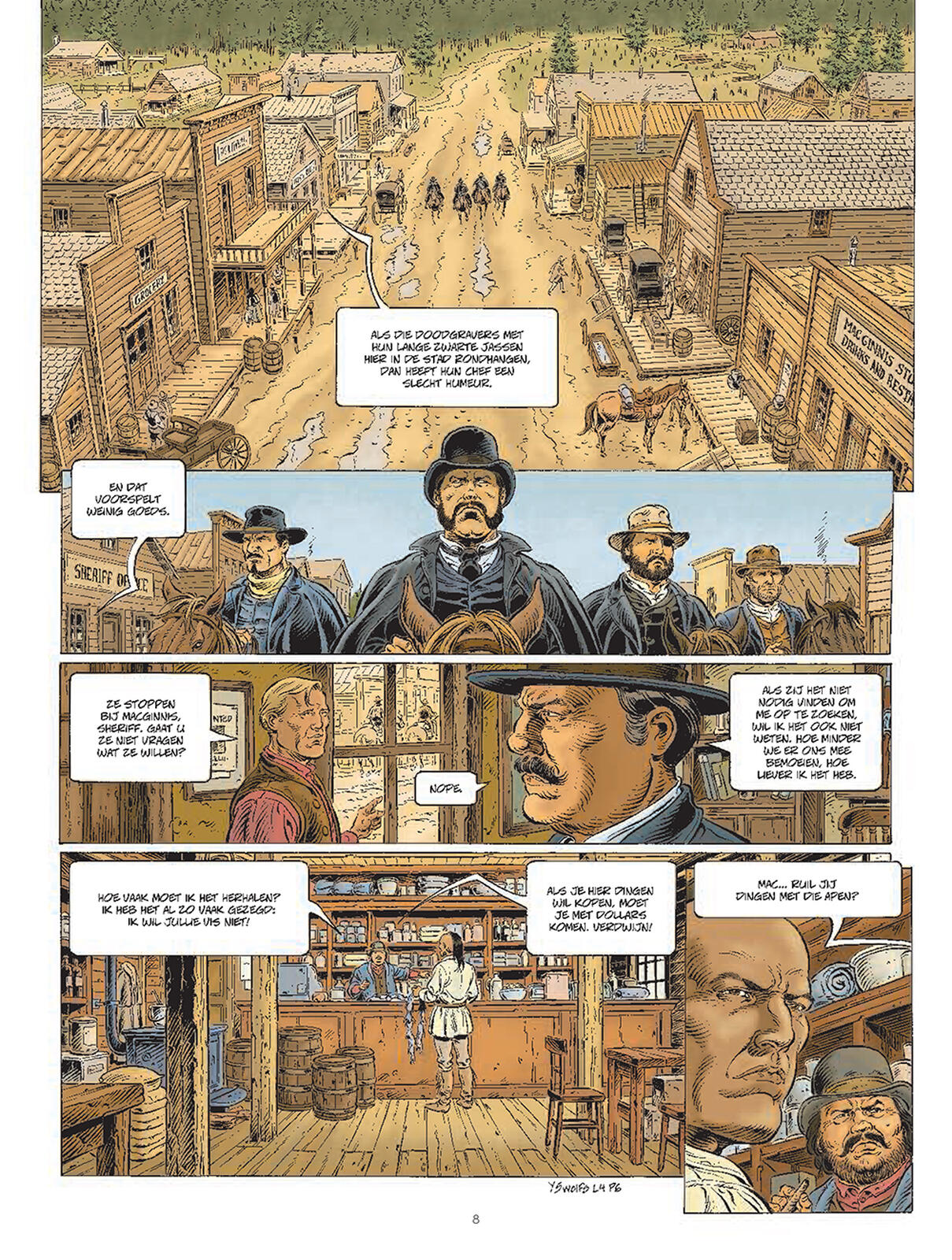 Niet te snel een lijstje aanleggen met de personages van deze 'occulte' western. Yves Swolfs (Durango, Legende, Prins van de Nacht, Vlad) zorgt ervoor dat zijn wreker het zaakje overzichtelijk houdt. Het mystieke element maakt ons nieuwsgierig. Even iemand aanraken is voor hem voldoende om allerlei info binnen te krijgen.