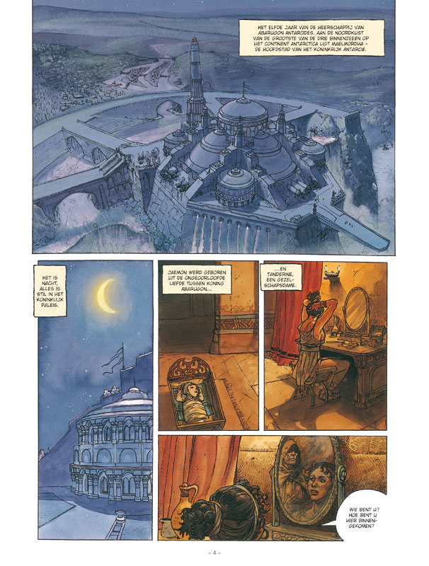 Twaalfduizend jaar vóór onze tijdrekening lag er op Antarctica geen ijs. Er ontwikkelde zich een beschaving die koninkrijken voortbracht met namen als Antarcië, Valusië en Leng ... Twaalfduizend jaar vóór onze tijdrekening leefde Jaemon, bastaardzoon van een koning. Hij droeg het merkteken van de dynastie der Antarciden ... Ter dood veroordeeld door de Eerste Dame Kaarla, wordt hij naar het eiland Khourg gebracht om zijn geest en zijn lichaam te versterken ... Scenarist Alain Paris, in het verleden succesvol romanschrijver, waagt zich de laatste jaren meer en meer aan het schrijven van stripverhalen. Samen met tekenaar Val, die de ruwe tijdsgeest goed weet te vatten, waagt hij zich aan dit oeroude verhaal.