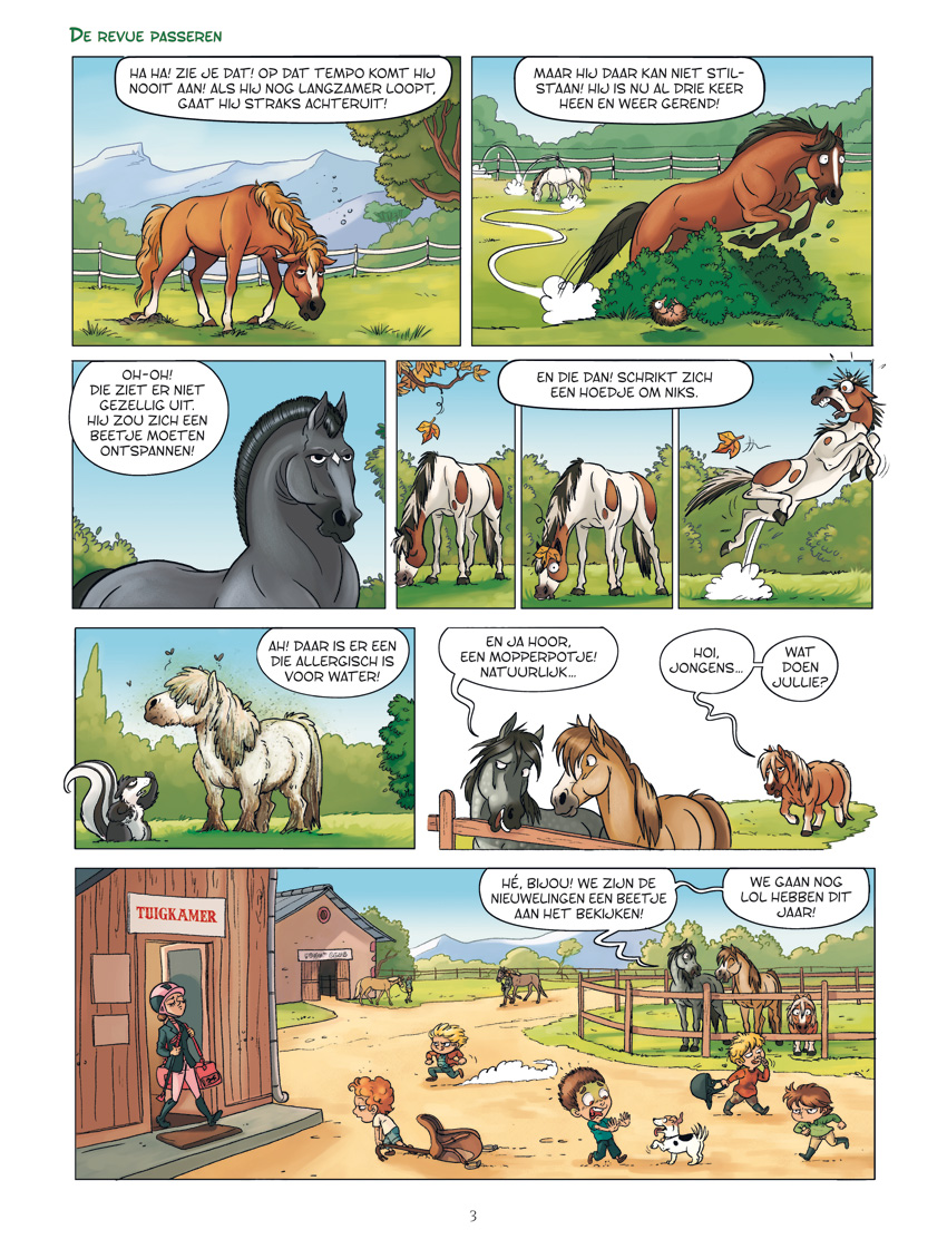 Het is weer tijd voor de manege! Maak kennis met de chagrijnige pony Bijou, lekkerbek Cookie, viespeuk Karel, lafaard Xanax en Flash, de flitsende volbloed met zijn wel heel bijzondere sprongtechniek. Een gezellig en kleurrijk clubje paarden en pony's die, tussen de paardrijlessen door, grappen uithalen, alles in de gaten houden en de ruiters het leven zuur maken! Te Paard! is een humorstrip voor paarden- en andere dierenliefhebbers van alle leeftijden!