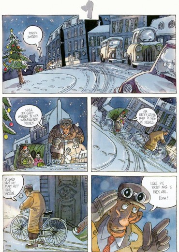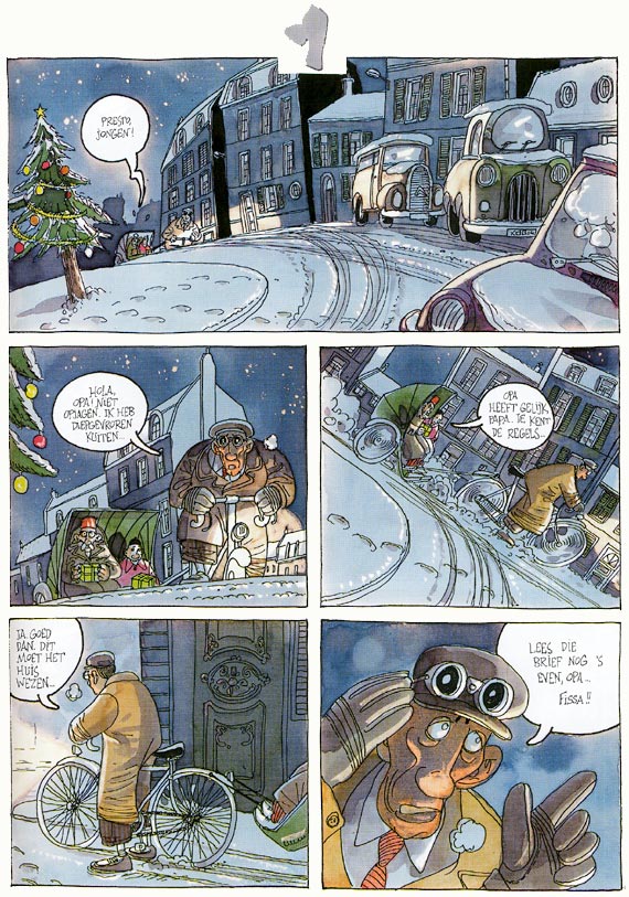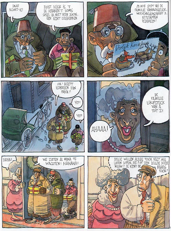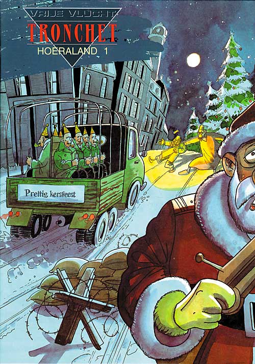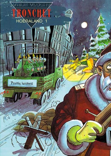 Beeld je dit eens in: op elke dag die de goede God schiep, en zelfs op de dagen die hij níét schiep, vieren de mensen Kerstmis. Punthoeden, serpentines en confetti verplicht. 't Is féést, weet je wel? Ze hebben lol, ze maken plezier, ha ha ha! Laat je gaan, tante Sjaan! In feite is het een dwangfiësta, even spontaan als de arbeid met diezelfde naam. Of je wilt of niet, elke dag vier je kerstavond tot diep in de nacht. Je móét. En vergeet vooral niet cadeautjes uit te wisselen, want anders kan je dat duur te staan komen. Je wordt meteen opgepakt door de Brigade van de Jolige Drammers, en die is nog wreder, nog meedogenlozer, nog onmenselijker dan de zedenbrigade. Ze controleert het gehalte aan goed humeur in je bloed: 'Blaast u maar even in dit ballonnetje!' Niks dan narigheid in een wereld die erg op de onze lijkt, al laat de realiteit de fictie er een poepje ruiken. Een nachtmerrie? Ongetwijfeld!